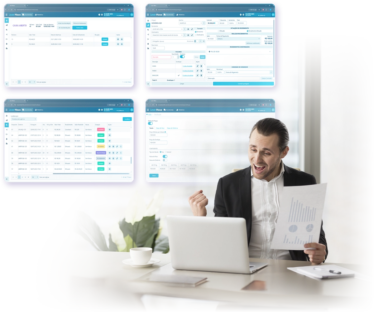 Com a Lever, sua empresa ganha produtividade, controle e mobilidade, tudo em uma única solução.